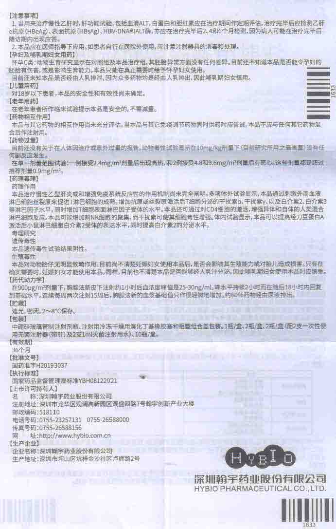 1.慢性乙型肝炎。详见说明书。 2.作为免疫损害病者的疫苗增强剂。详见说明书。